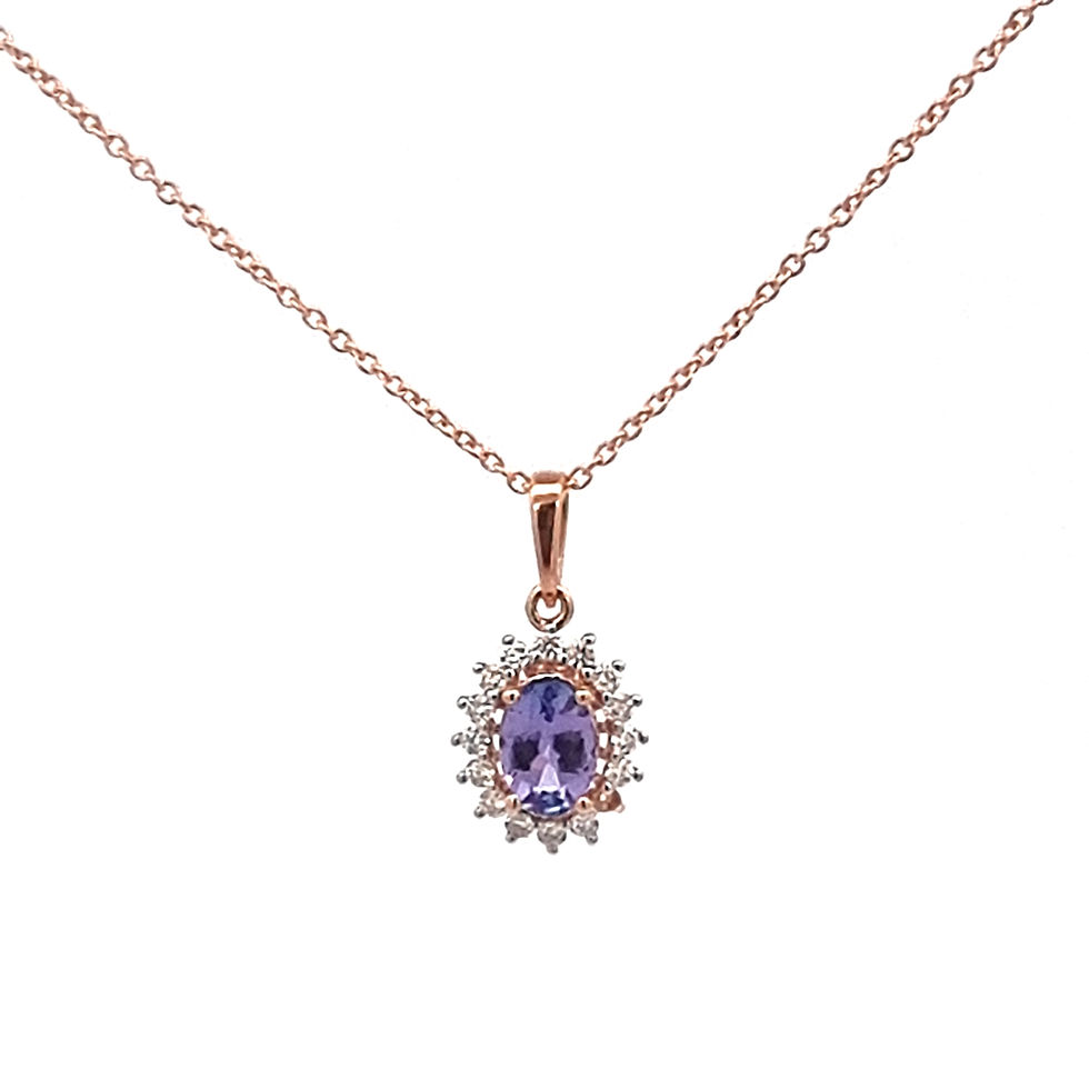 9ct Rose Gold Tanzanite & Diamond Pendant