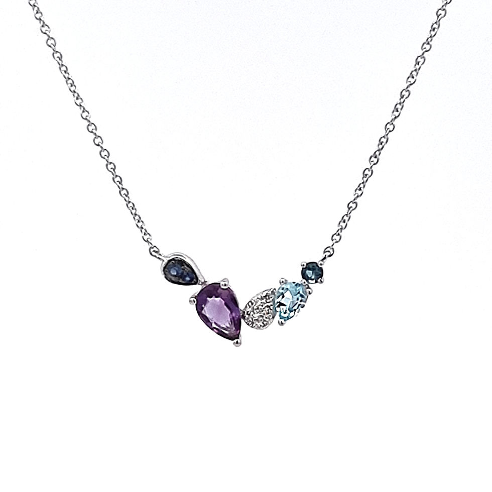 9ct White Gold Swiss Blue, London Blue Topaz, Amethyst, Sapphire & Diamond Pen