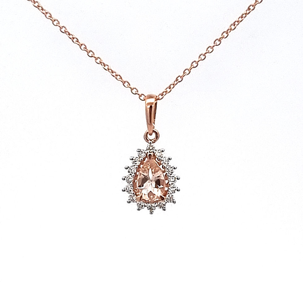 9ct Rose Gold Morganite & Diamond Heart Pendant
